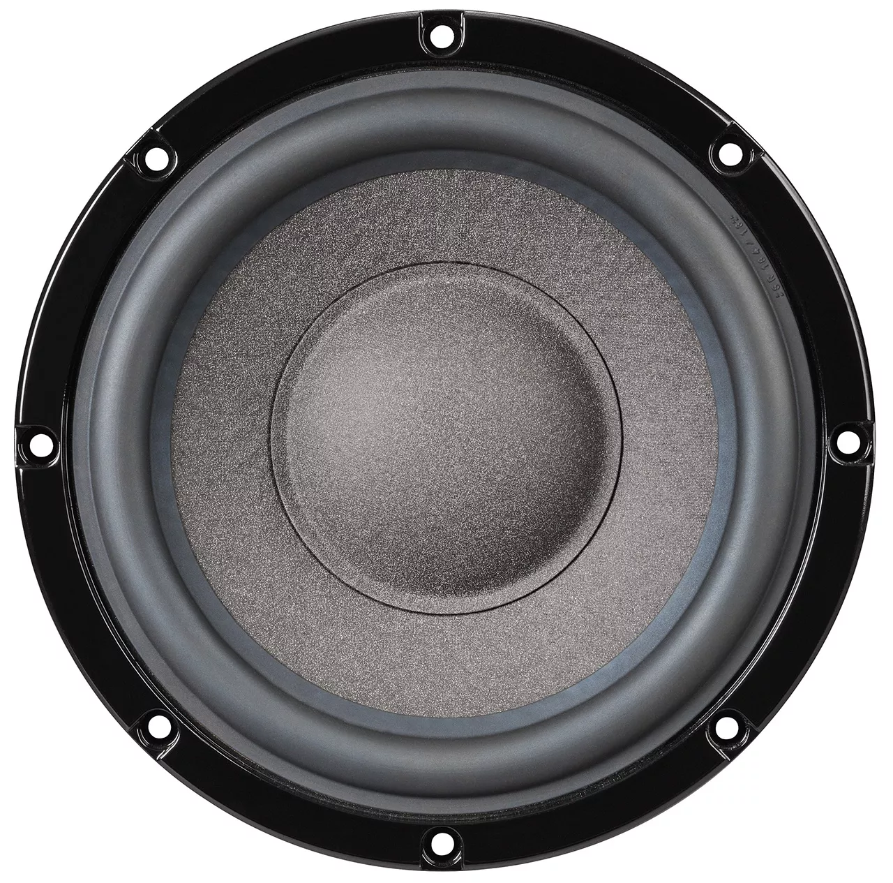 - Außerordentlich steife, handgeschöpfte Papiermembran mit einer neuartigen „MicroSphere“-Beschichtung aus keramischen Mikro-Hohlkugeln, eingebunden in eine Polymerschicht, ermöglicht beste Impulswiedergabe