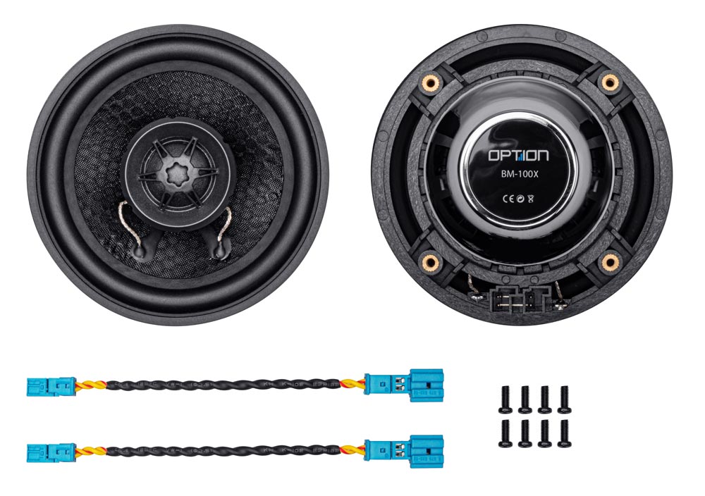 Bei den Option BM-100X handelt es sich um ein hochwertiges Koaxiallautsprechersystem welches sich in allen BMW der E, F und G-Serie ab Baujahr ca. 2006 problemlos installieren lässt. Die Lautsprecher können sehr einfach an Ihr spezifisches BMW-Modell angepasst werden, hierfür befinden sich fahrzeugspezifische Aufnahmen im Lieferumfang die per Plug & Play installiert werden können. Der Lautsprecher deckt seinen Frequenzbereich sehr gut ab und punktet mit seinem warmen Sound. Durch seinen 20 mm Seidenkalotten-Hochtöner liefert er auch bei höheren Lautstärken einen sauberen Klang und neigt nicht zum übersteuern. Das Option BM-100X bietet eine klare Klangverbesserung mit sehr kleinem Einbauaufwand.